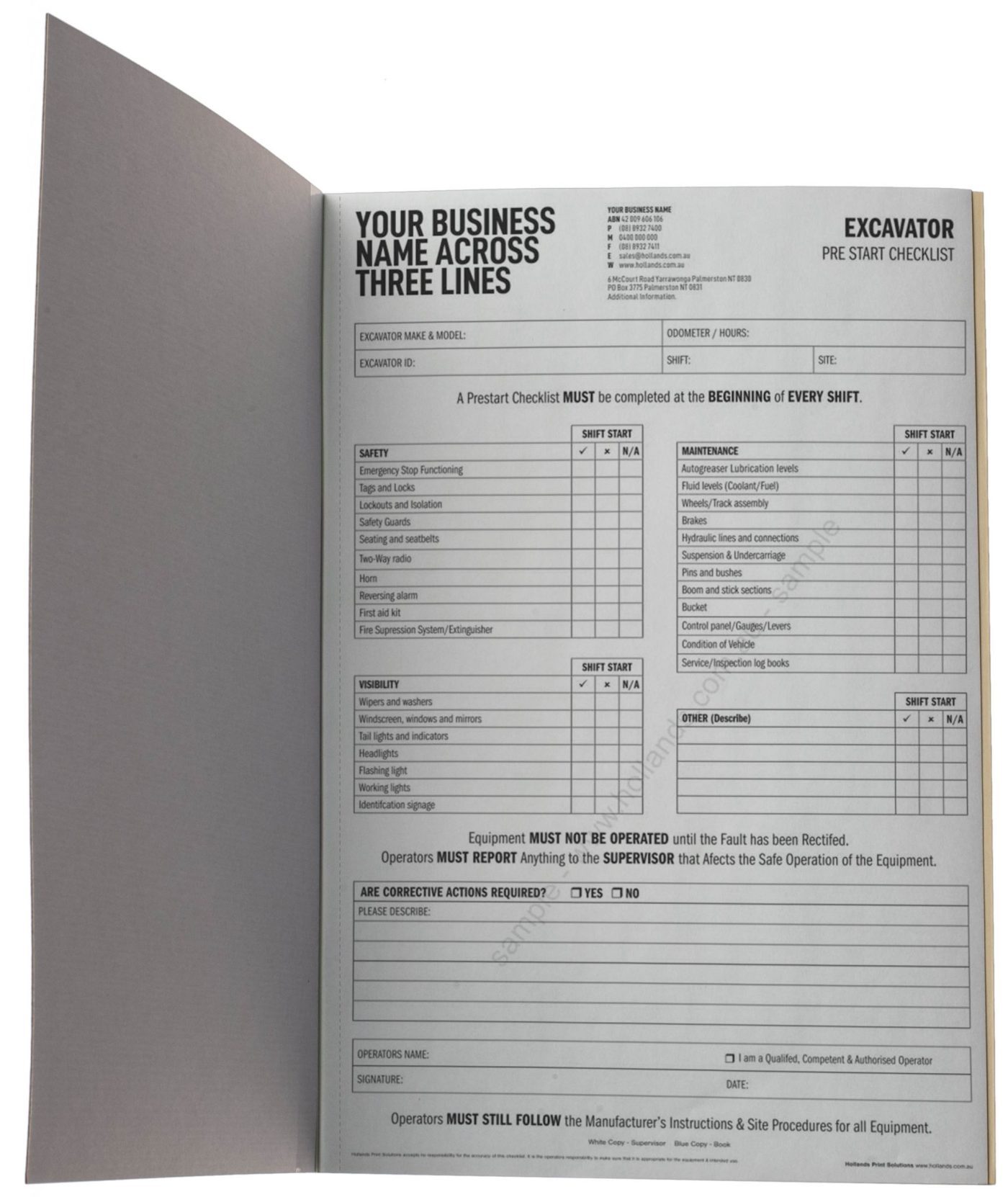 Need an Excavator Daily Log Book to meet your reporting requirements? We can help with standard or custom forms, bound into sturdy book form.